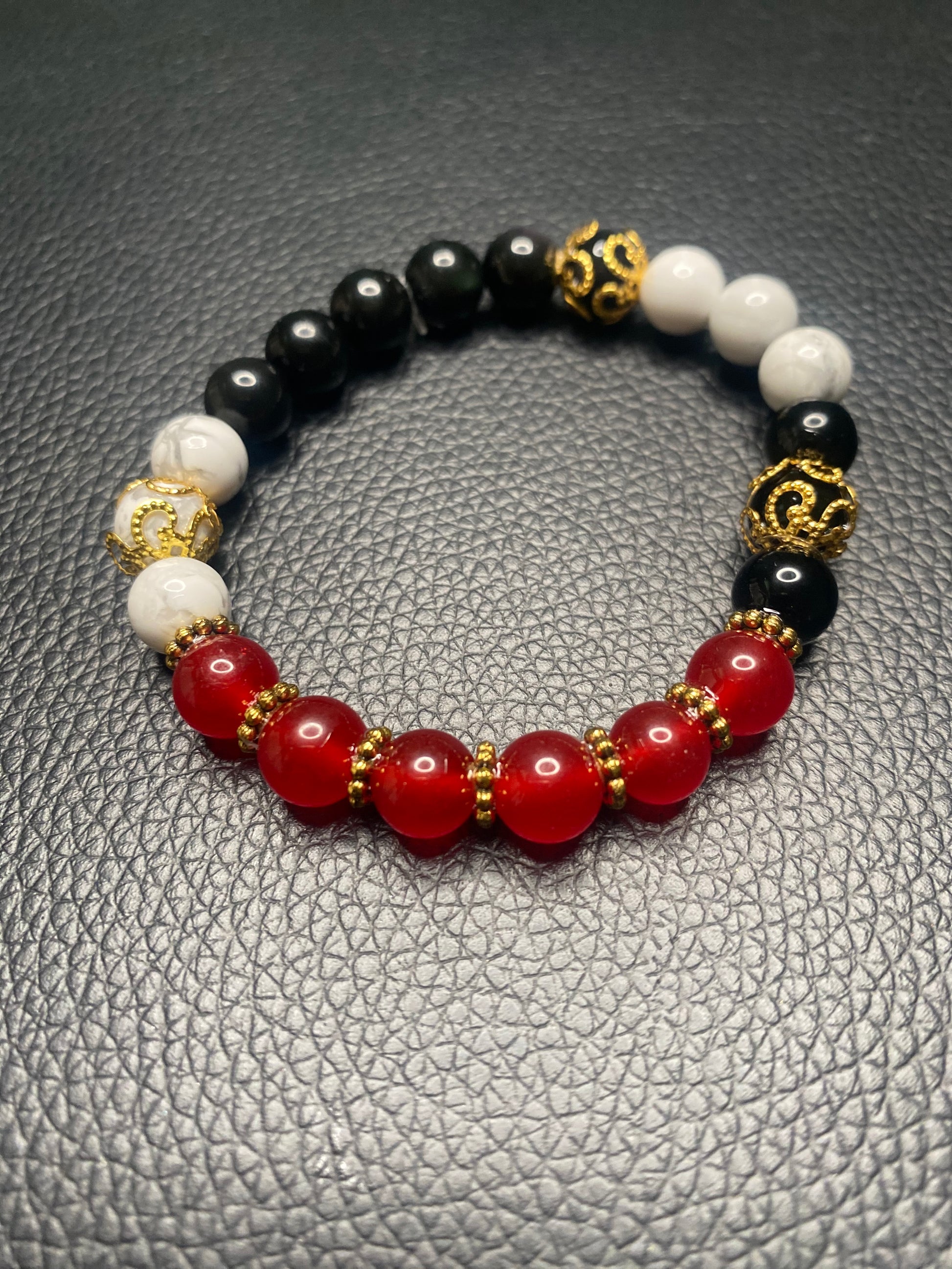 This piece was inspired by a loved one and I am Gr8ful to extend today. BLACK OBSIDIAN is always on the move redirecting any dismantled energies in your path as HOWLITE assists with the oncoming supporting positive energies to aid in clarity and calmness as the SELF gets in proper alignment.